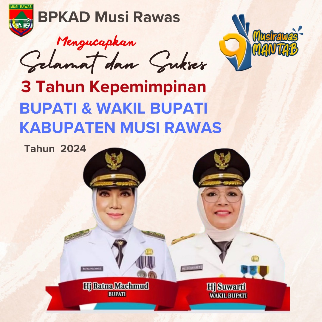BPKAD Musi Rawas Mengucapkan Selamat dan Sukses ke 3 Tahun Kepemimpinan Bupati Mura Hj Ratna Machmud dan Wabup Hj Suwarti redaksi_laporansumateraMaret 22, 2024272 Dilihat Post Views: 272Pos terkaitPolres PALI Berhasil Ungkap Kasus Narkoba dalam Operasi Pekat 1 MusiKolaborasi lintas sektor, Komunitas BTH Hidupkan Museum Siginjei sebagai Pusat Interaksi PublikKadis PU CKTR-P Mura Mengucapkan Selamat Pelantikan Kepengurusan PWI SumselKadis PU CKTR-P Mura Mengucapkan Selamat 3 Tahun Kepemimpinan Bupati Mura Hj Ratna Machmud dan Wabup Mura Hj SuwartiKadispora Mura Mengucapkan Selamat Tahun Baru 2024Kepala BPKAD Muratara Mengucapkan Selamat Menunaikan Ibadah Puasa Ramadhan 1445