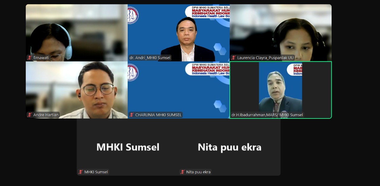 Palembang, Laporan Sumatera — Dewan Pimpinan Wilayah (DPW) Masyarakat Hukum Kesehatan Indonesia (MHKI) Sumatera Selatan memenuhi undangan Badan Keahlian Sekretaris Jenderal DPR RI untuk mengikuti diskusi dan konsultasi publik terkait pengawasan pelaksanaan Undang-Undang Nomor 17 Tahun 2023 tentang Kesehatan. Kegiatan ini digelar secara virtual melalui Zoom Meeting pada kamis (8/5/2025), berlangsung dinamis dari pukul 09.30 WIB hingga 12.00 WIB.