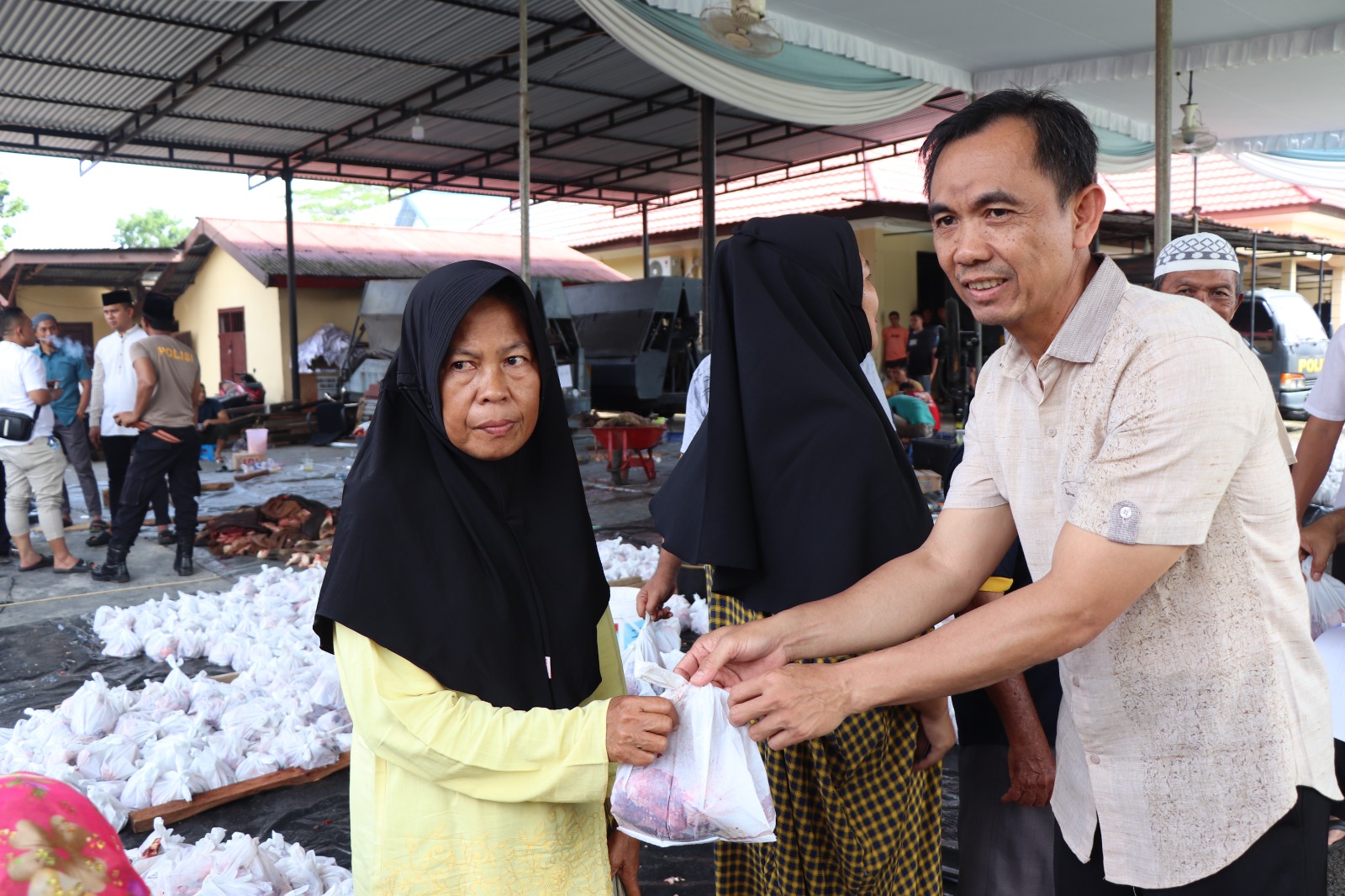 Dan, hasilnya jumlah total daging yang dibagikan berkisar ribuan kantong paket daging dan tulang, untuk dibagikan kepada yang berhak menerima diantaranya, pondok pesantren, panti asuhan, warga sekitar Polres Mura, mitra Polres Mura, serta personel Polres Mura.