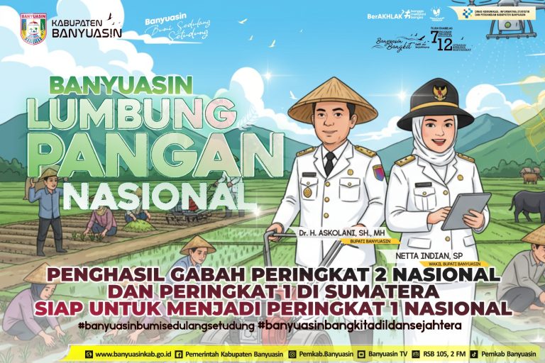 Pangkalan Balai — Pemerintah Kabupaten Banyuasin akhirnya menduduki nomor 2 Lumbung Pangan Nasional dengan produksi padi terbesar di Indonesia sebanyak 1.163.416 ton/GKG mengungguli Kabupaten Karawang Provinsi Jawa Barat dengan produksi padi sebesar 911.565 ton/GKG dan dibawah Kabupaten Indramayu Provinsi Jawa Barat dengan produksi padi 1.253.718 ton/GKG.