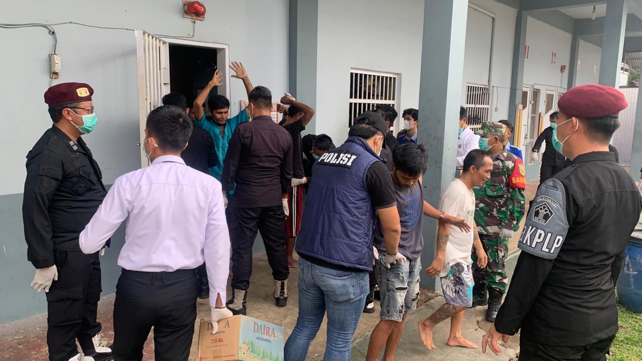 Lapas Kelas IIA Banyuasin berkolaborasi dengan ketiga instansi tersebut bekerjasama melaksanakan apel siaga dan razia penggeledahan kamar hunian warga binaan.
