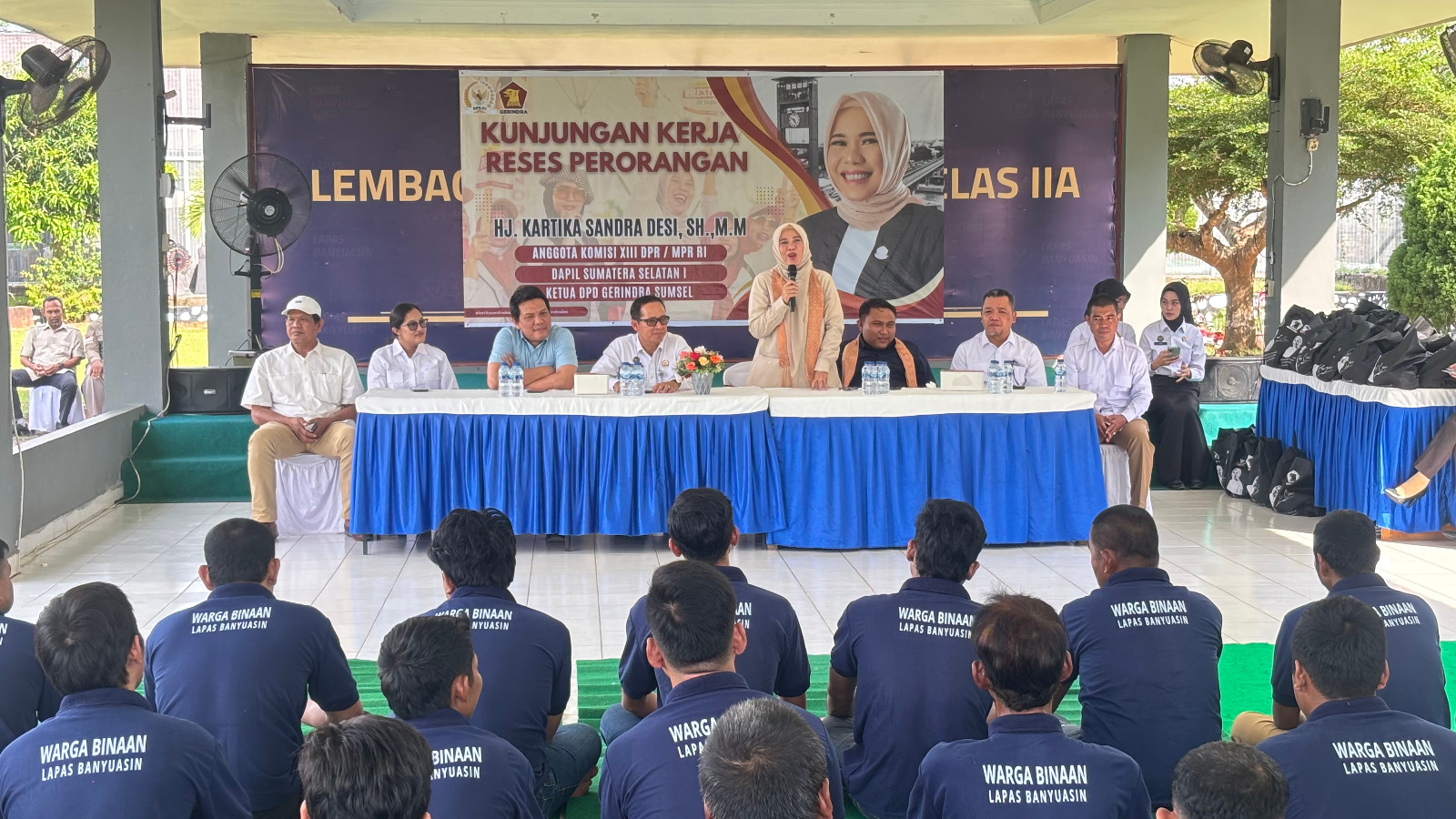 Banyuasin, – Lembaga Pemasyarakatan (Lapas) Kelas IIA Banyuasin mendapat kunjungan istimewa dari Anggota DPR RI Komisi XIII Dapil Sumatera Selatan, Hj. Kartika Sandra Desi, S.H., M.M., dalam rangka Sosialisasi Empat Pilar Kebangsaan dan kegiatan reses perorangan, Senin (27/10/2025).