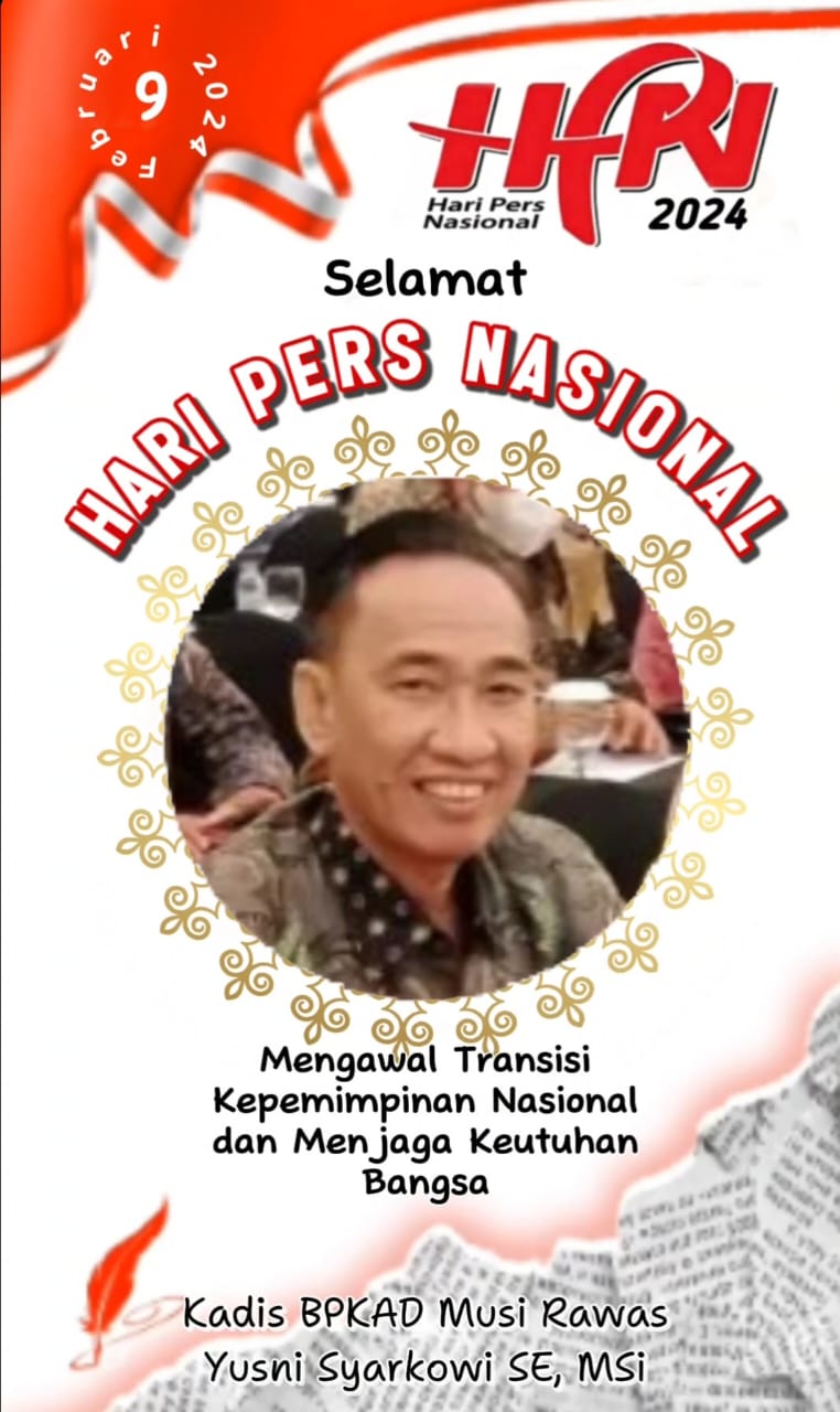 Kepala BPKAD Musi Rawas Mengucapkan Selamat HPN Tahun 2024 redaksi_laporansumateraMaret 17, 2024254 Dilihat Post Views: 254Pos terkaitPolres PALI Berhasil Ungkap Kasus Narkoba dalam Operasi Pekat 1 MusiKolaborasi lintas sektor, Komunitas BTH Hidupkan Museum Siginjei sebagai Pusat Interaksi PublikKadis PU CKTR-P Mura Mengucapkan Selamat Pelantikan Kepengurusan PWI SumselKadis PU CKTR-P Mura Mengucapkan Selamat 3 Tahun Kepemimpinan Bupati Mura Hj Ratna Machmud dan Wabup Mura Hj SuwartiBPKAD Musi Rawas Mengucapkan Selamat dan Sukses ke 3 Tahun Kepemimpinan Bupati Mura Hj Ratna Machmud dan Wabup Hj SuwartiKadispora Mura Mengucapkan Selamat Tahun Baru 2024