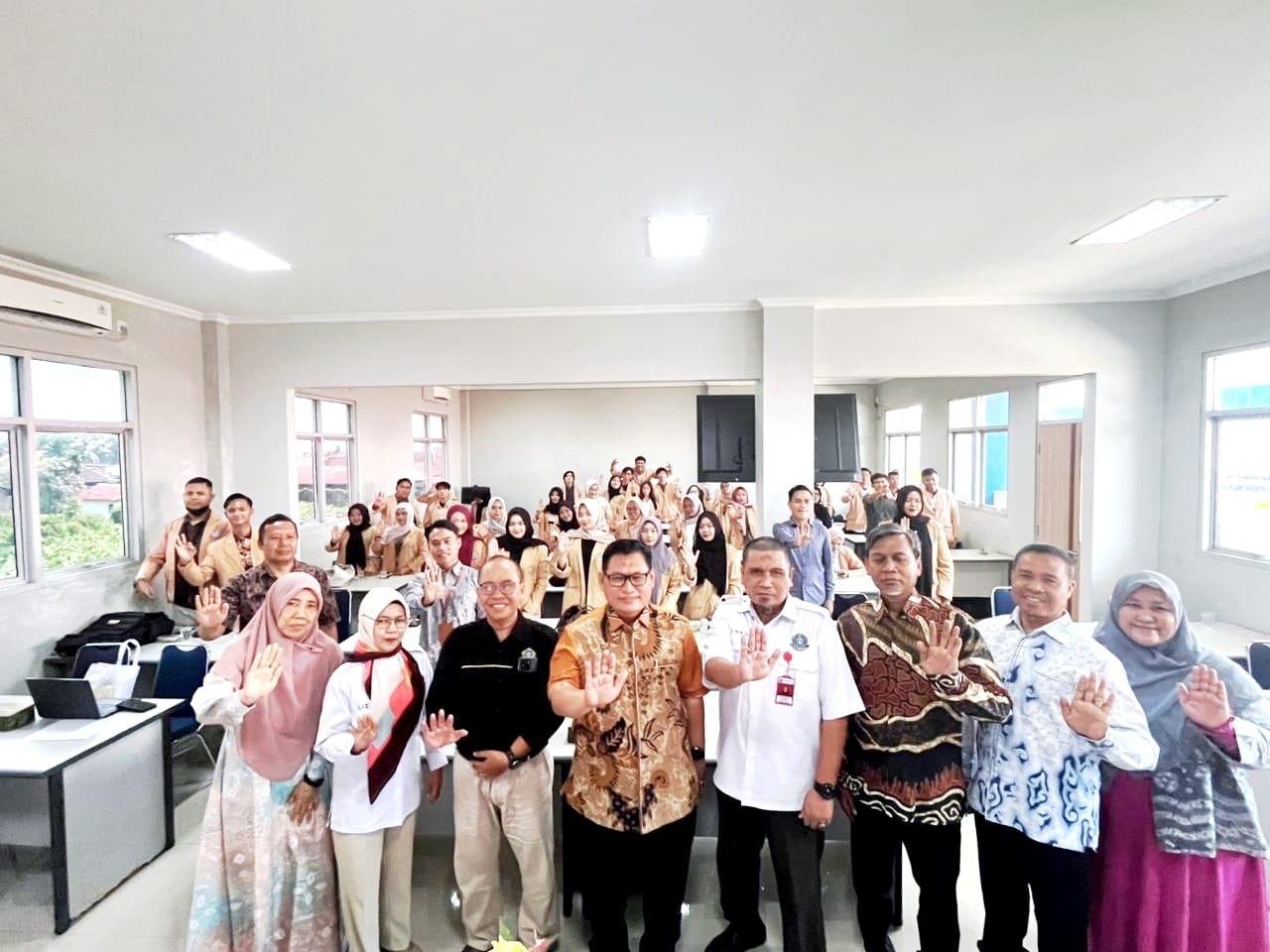 Dari pihak Universitas Sjakhyakirti, hadir Wakil Dekan I Fakultas Hukum Junaidi, S.H., M.H., Citra Dewi Saputra, S.H., M.H., Zaimah Husin, S.H., M.H., Dr. Meirina Nurlani, S.H., M.Kn., dan Waliadin, S.H.I., M.H.. Sementara dari pihak rektorat, hadir Wakil Rektor II Liza Nofianti, S.H., M.H., serta Dr. Maulan Irwandi, S.E., M.M.