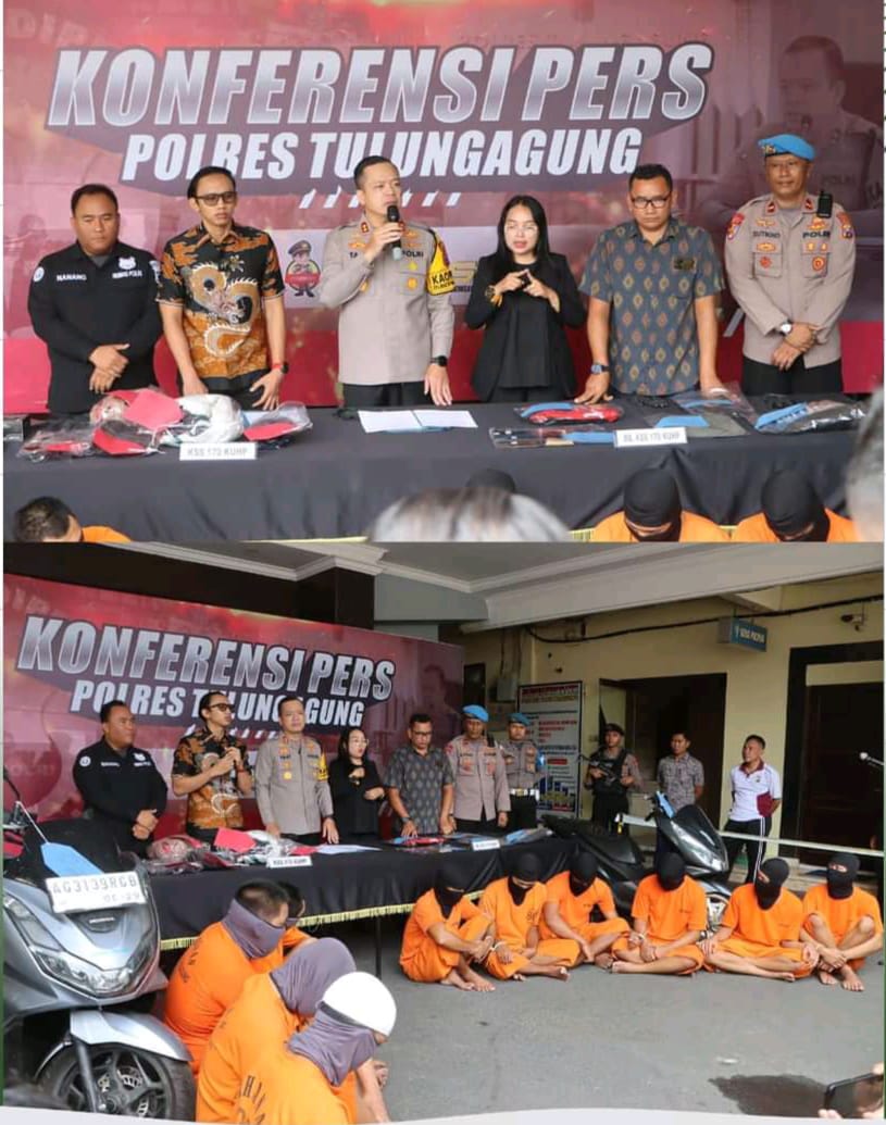 Tulungagung, laporansumatera.com – Polres Tulungagung menggelar Konferensi Pers untuk mengungkapkan kasus pengeroyokan yang terjadi di dua wilayah Tempat Kejadian perkara (TKP).
