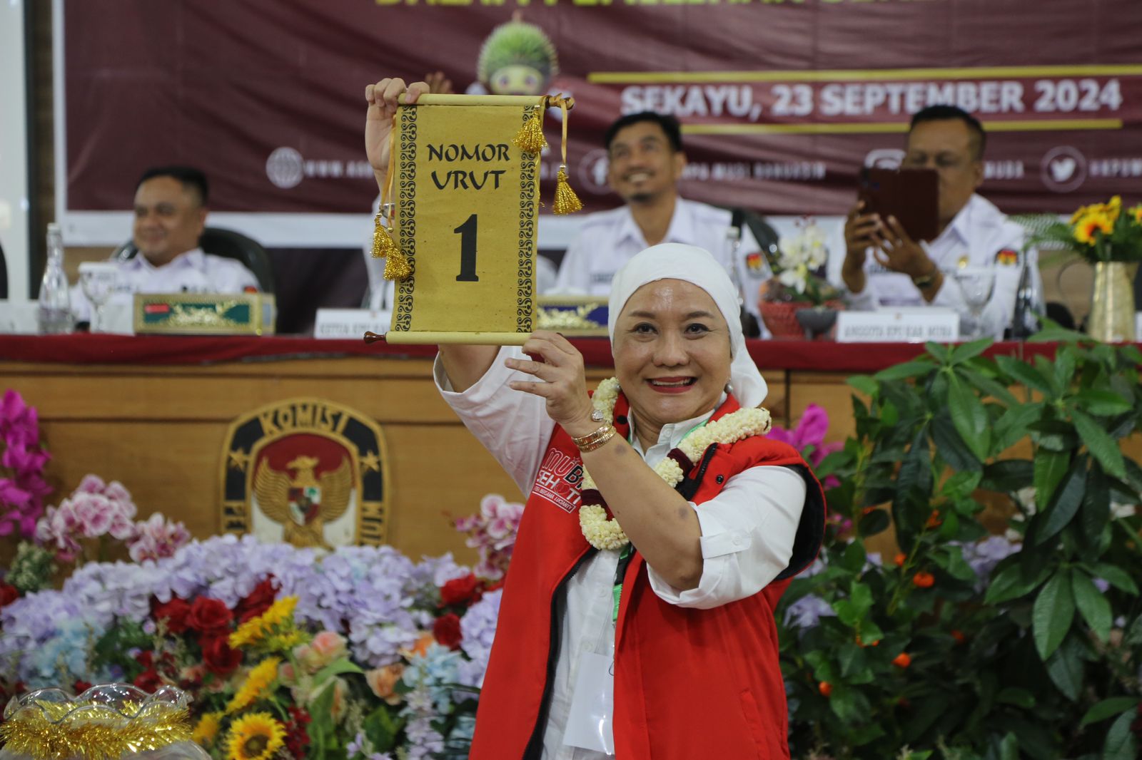 “Semua angka sama, yang penting kita berusaha komitmen untuk visi misi memajukan Kabupaten Muba. Ya, nomor urut satu selaras dengan tagline Sehati yakni Sejahtera bersama Lucianty-Syaparuddin,” ucap Calon Bupati Muba Lucianty usai pengambilan nomor urut di KPU Muba.
