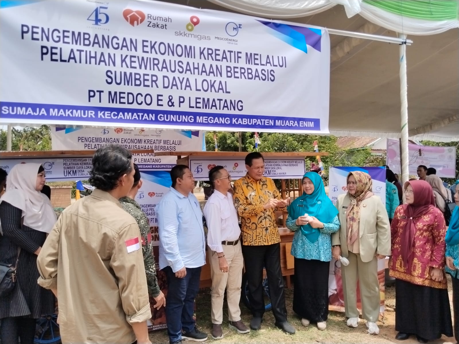Dalam kesempatan ini, secara simbolis, Medco E&P juga menyerahkan bantuan UMKM (angkringan, es kelapa muda, minuman herbal sehat, cucian motor dan ternak ayam kampung) serta Program Pengembangan Ekonomi Kreatif melalui pelatihan kewirausahaan berbasis sumber daya lokal. Penyerahan dilakukan oleh Bupati Muara Enim kepada penerima manfaat. (***)