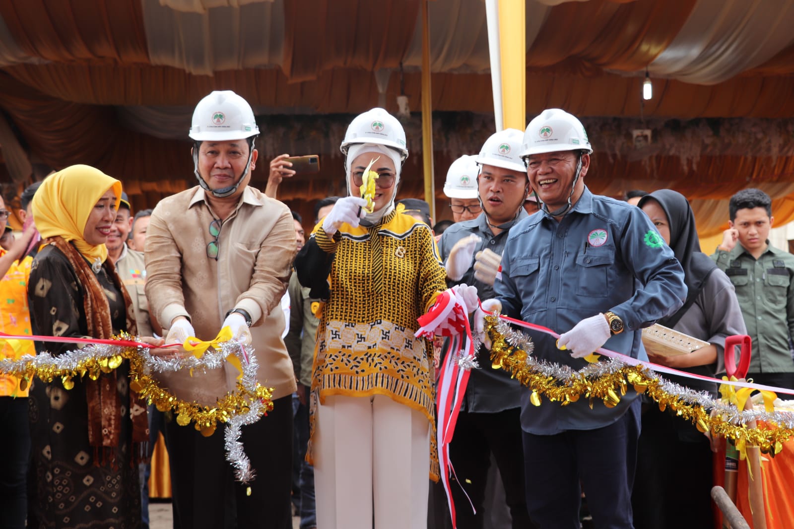 Ground Breaking PT PUSSA ini ditutup dengan pemotongan pita peletakan batu pertama, penanaman pohon, pembagian sembako, serta pengundian door prize.