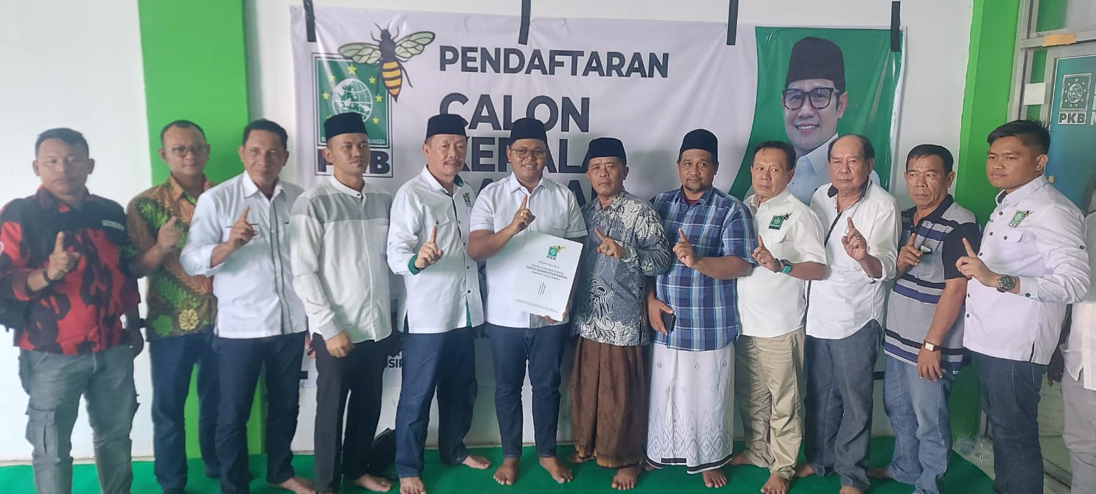 MUSI RAWAS-Untuk menunjukkan keseriusan maju sebagai calon Kepala Daerah (Cakada) Pemilihan Umum (Pemilu) 2024, Dian Prasetyo mengambil formulir pendaftaran di Sekretariat PKB Musi Rawas, Senin (21/4/2024).