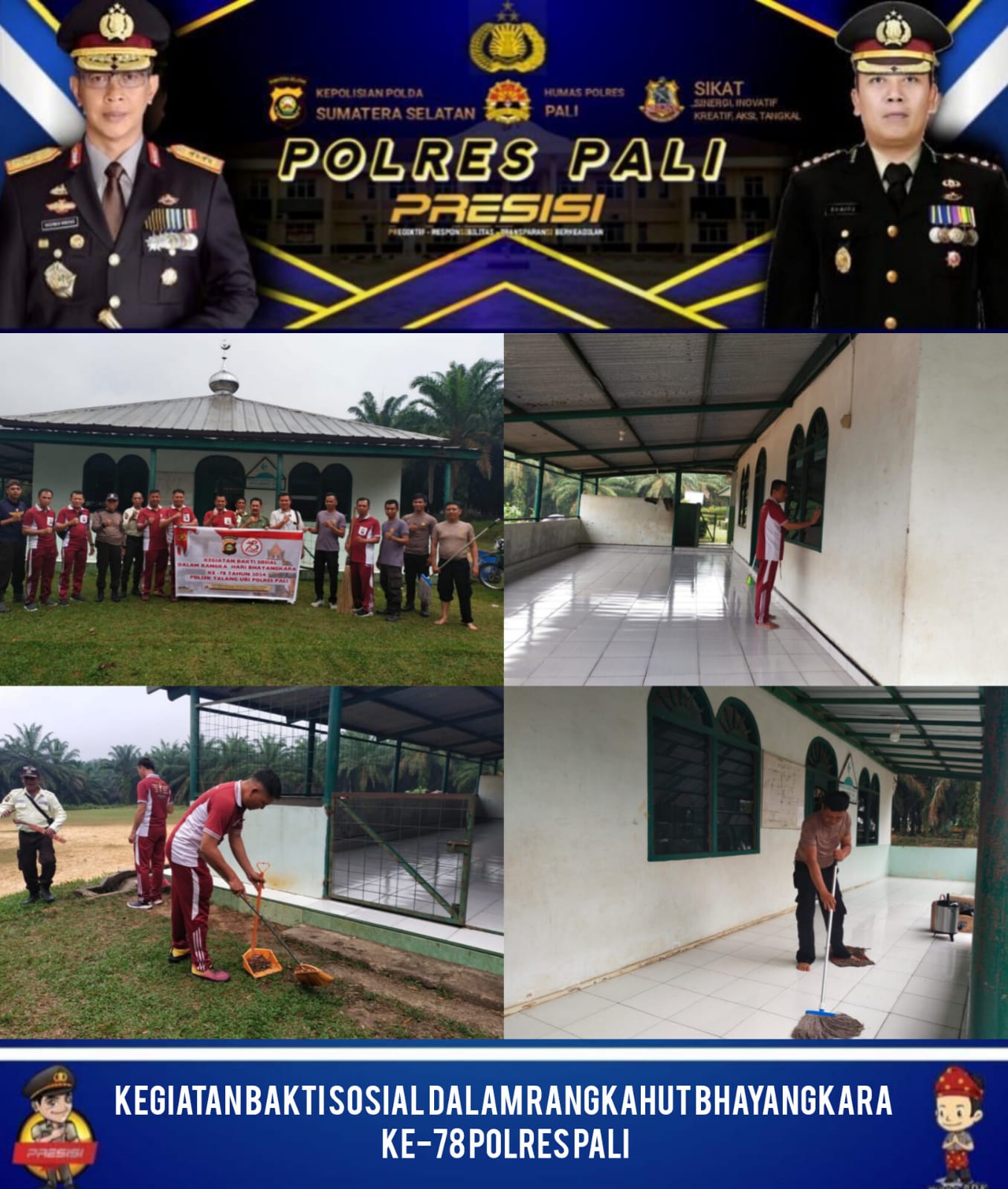PALI – Dalam rangka memperingati Hari Ulang Tahun Bhayangkara ke-78, Polres PALI melaksanakan kegiatan bakti sosial berupa kurve di beberapa tempat ibadah.