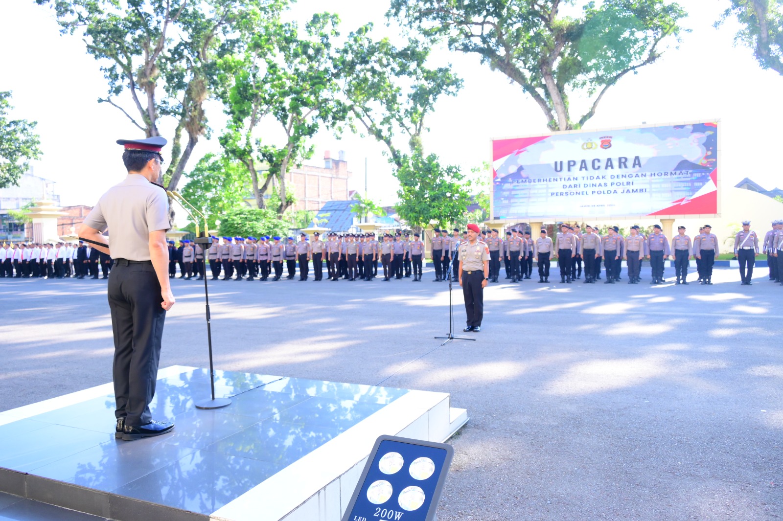 Dalam amanatnya, Kapolda Jambi menegaskan bahwa upacara PTDH merupakan bentuk komitmen tegas institusi Polri dalam menegakkan disiplin dan kode etik di lingkungan kepolisian.