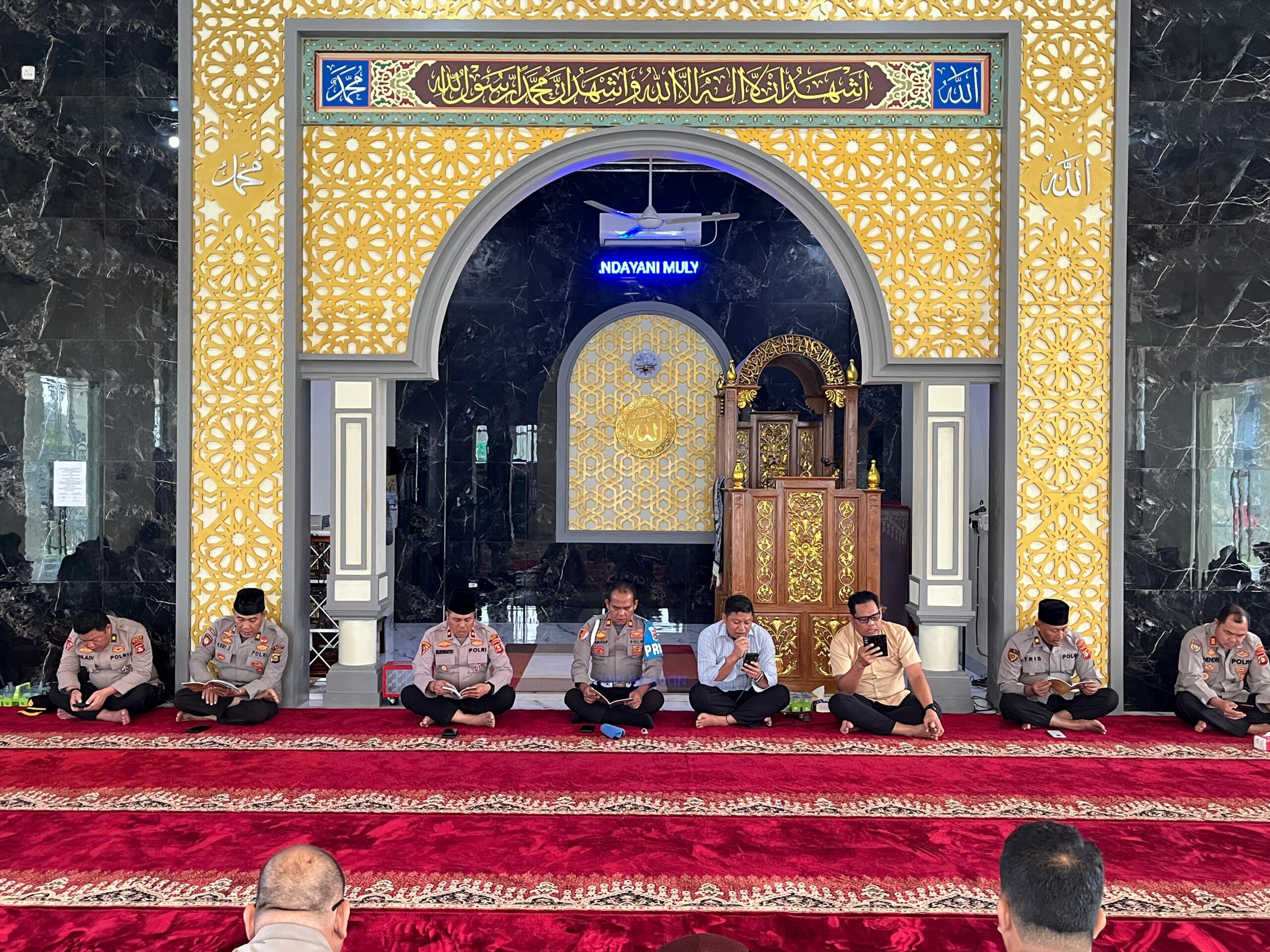 Suasana khidmat menyelimuti pelaksanaan Binrohtal yang diawali dengan pembacaan ayat suci Al-Qur’an, dilanjutkan dengan tausiyah, serta doa bersama demi keselamatan dan keberkahan dalam menjalankan tugas kepolisian.
