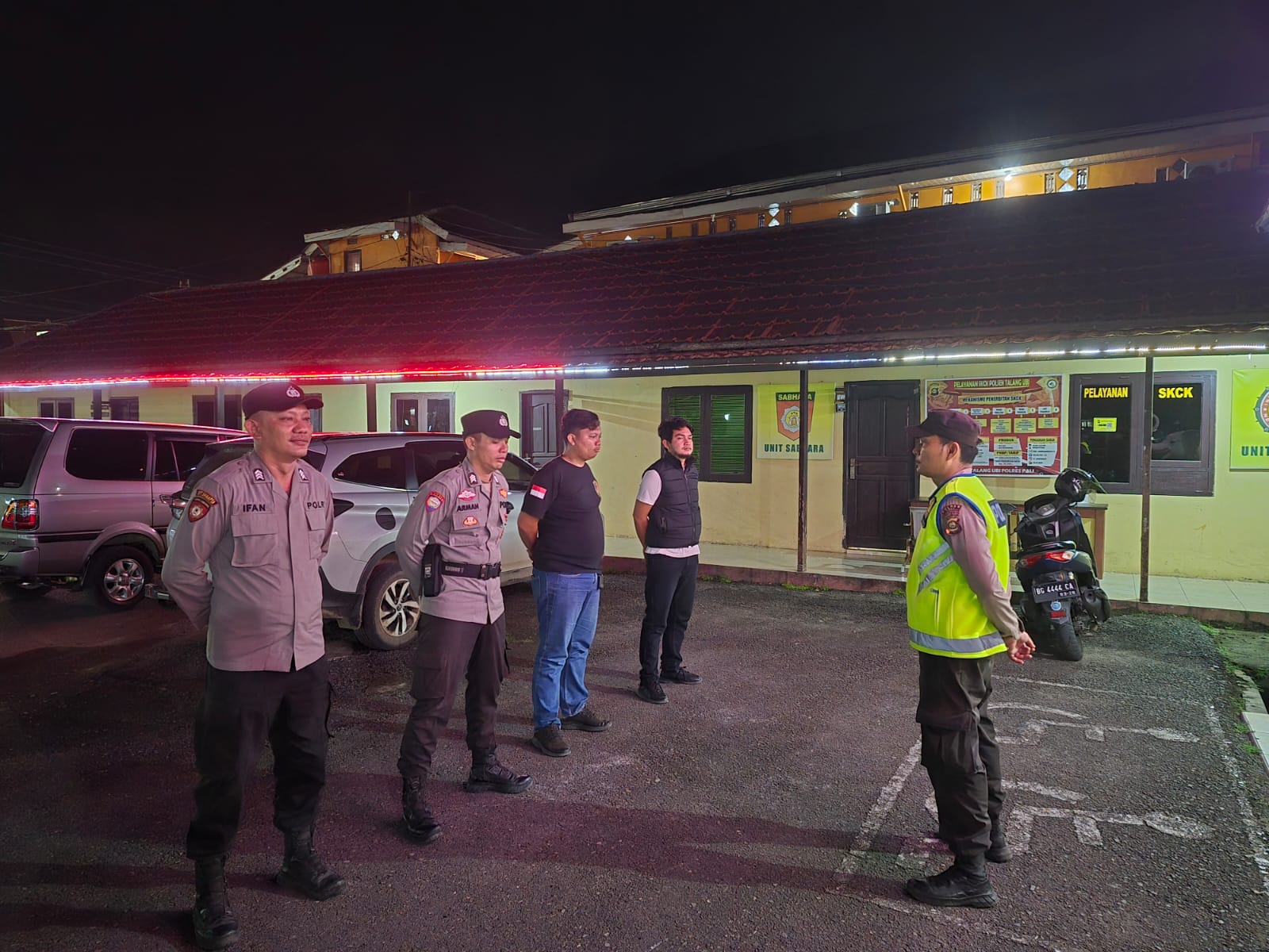 Kegiatan diawali dengan apel yang dilaksanakan di Mapolsek Talang Ubi, Kelurahan Handayani Mulya, Kecamatan Talang Ubi,Kabupaten Penukal Abab Lematang Ilir (PALI), pukul 21.00 WIB.
