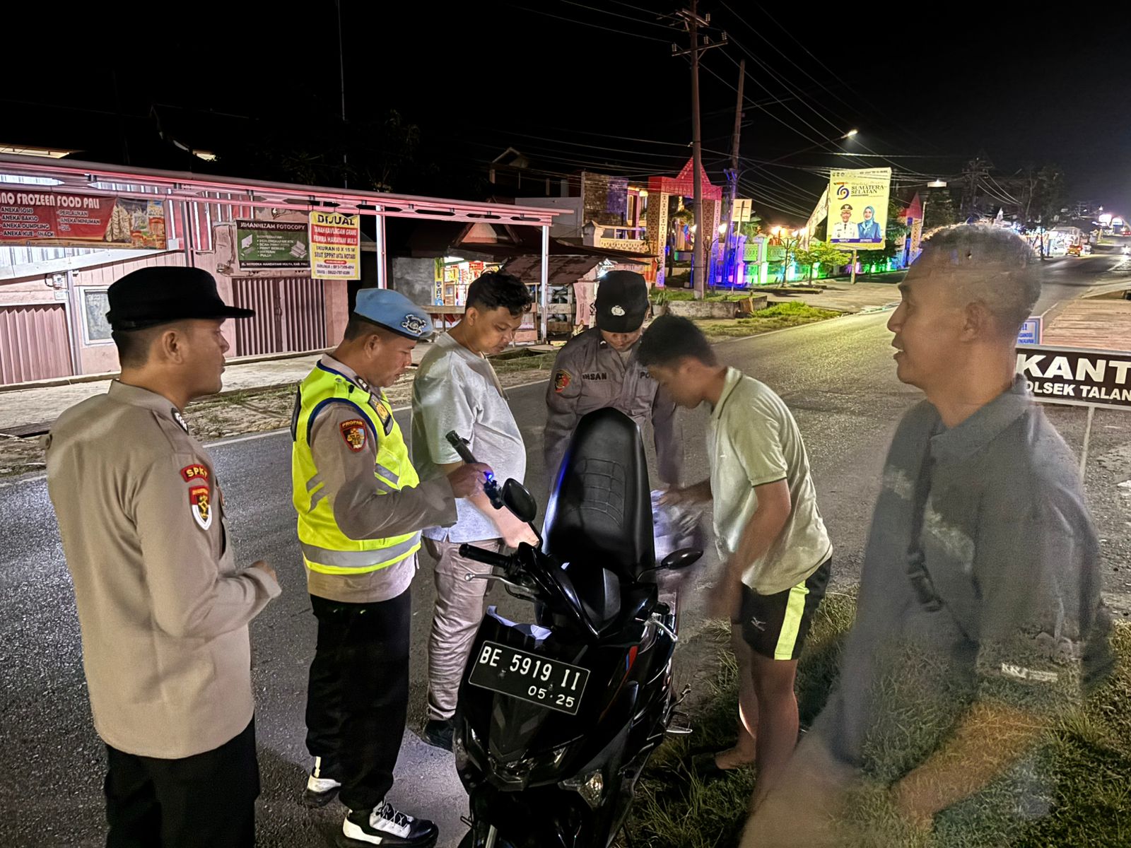 Kegiatan yang dimulai pukul 20.00 WIB tersebut dipimpin langsung oleh PAWAS Aiptu Sumaryono, S.H., dengan melibatkan personel gabungan Polsek Talang Ubi berdasarkan Surat Perintah Kapolsek Talang Ubi Nomor: Sprin/50/V/OPS.1.2.3/2025.