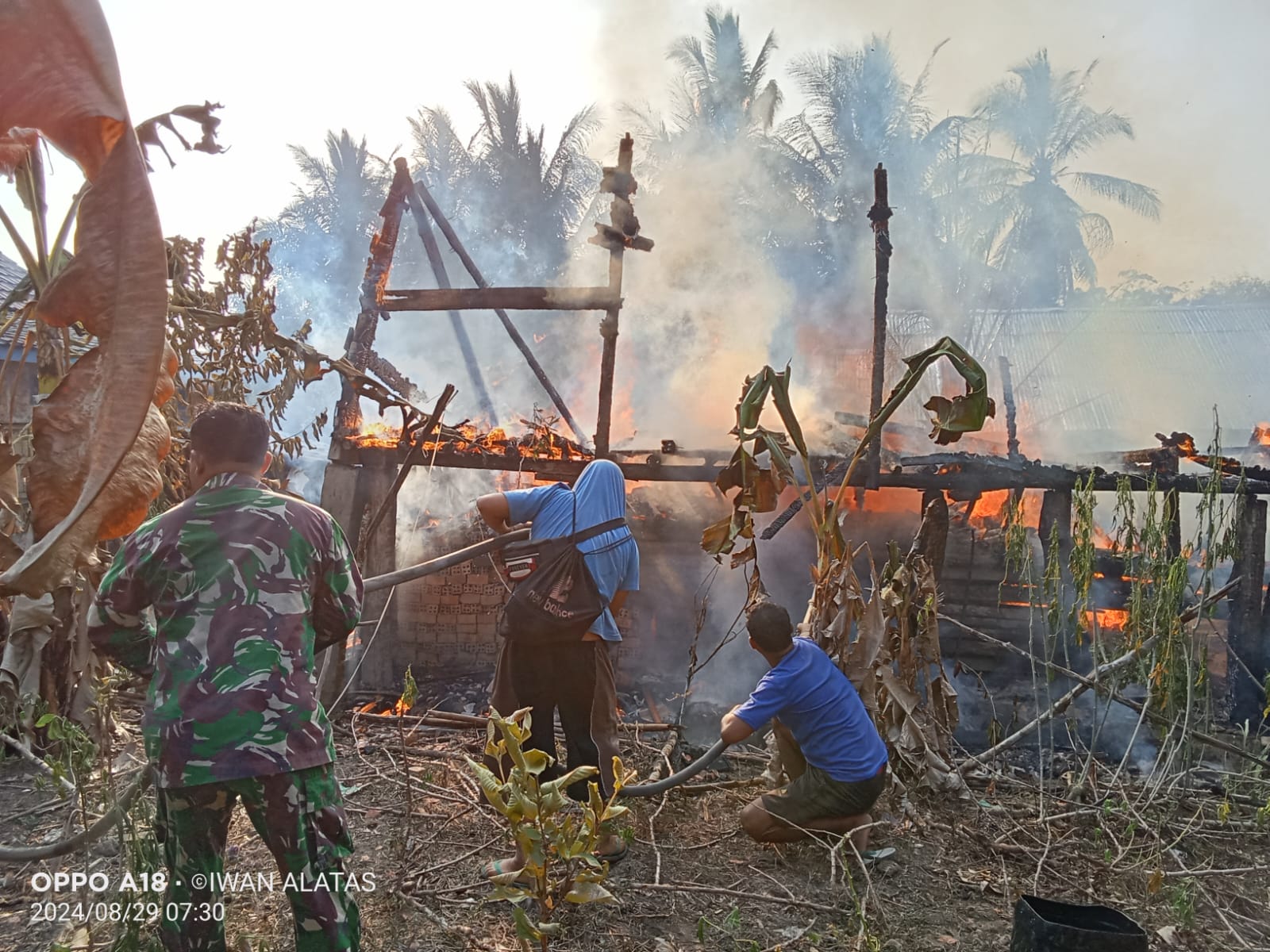 Tim pemadam kebakaran tiba di lokasi sekitar pukul 07.54 WIB dan bersama warga setempat, api berhasil dipadamkan pada pukul 08.20 WIB. Namun, sayangnya, rumah sudah terbakar habis dan rata dengan tanah.