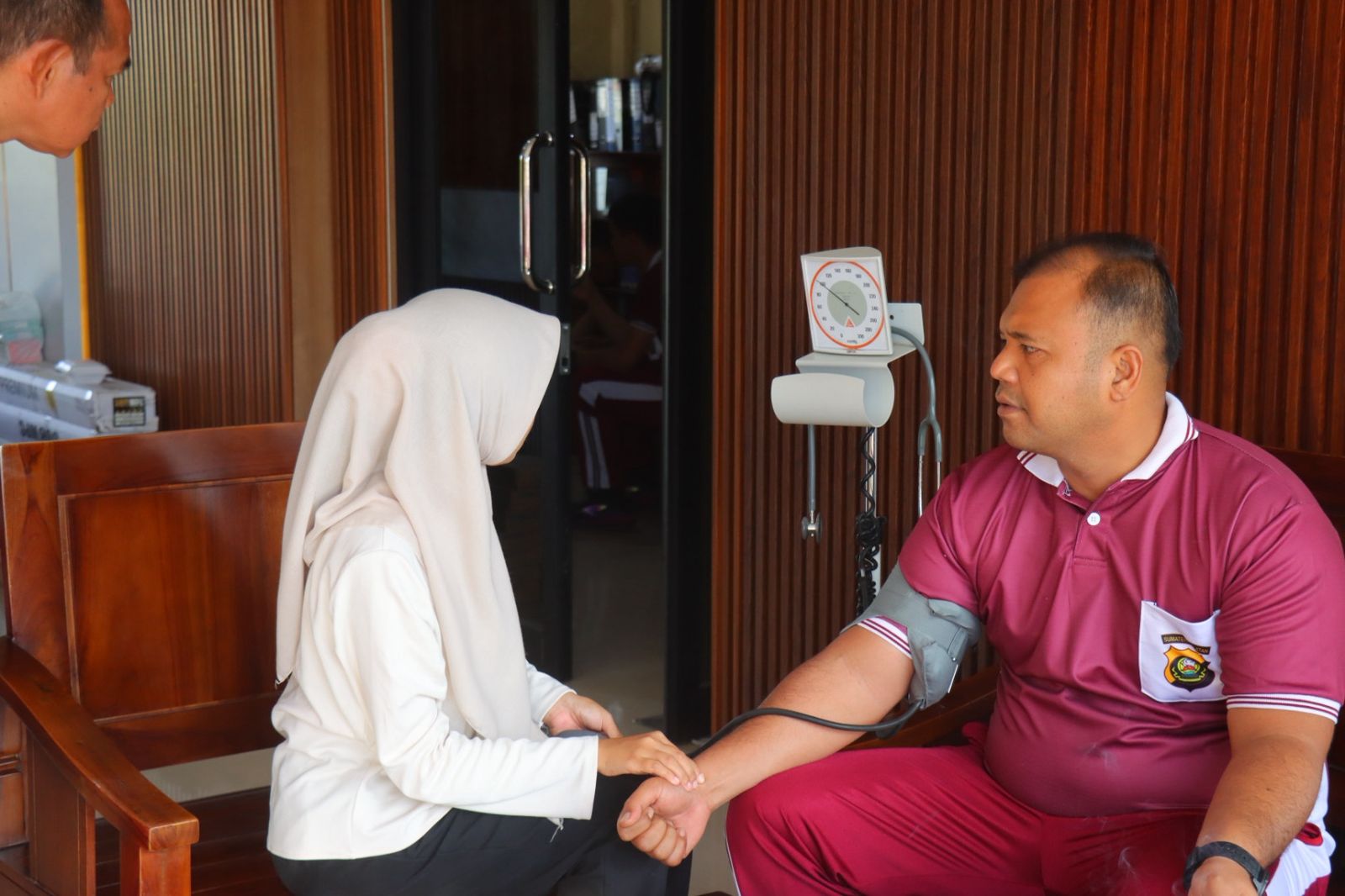 Dengan dipimpin oleh Aipda Hardiansyah,A.Md.Kep selaku Ps.Kasidokkes, tim medis yang terdiri dari dokter mitra,Briptu Aditia Warman,S.Kep,Sinta Anggraini, Amd.Kep, dan Salsah Aprilia Putriyani, Amd.Kep melayani pemeriksaan kesehatan berupa pengecekan tekanan darah,serta tes kit gula darah, asam urat, dan kolesterol kepada seluruh Pejabat Utama (PJU) Polres PALI.