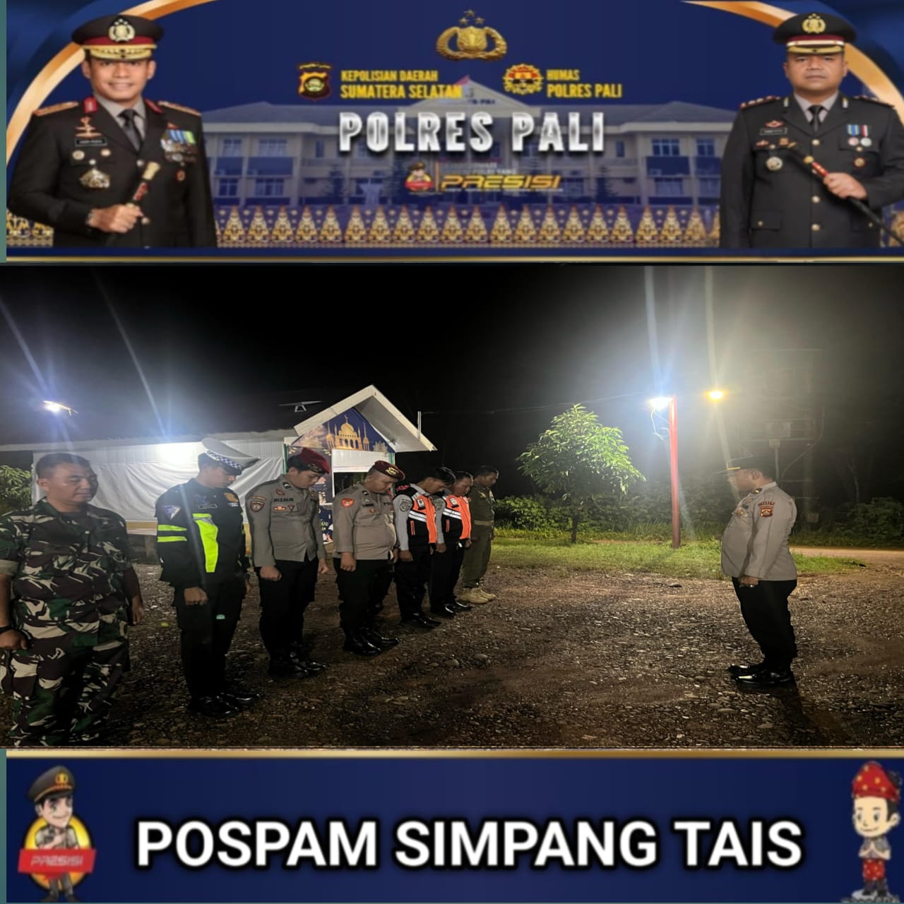 Dalam pengamanan di Pospam Simpang Tais, terdapat personel gabungan yang terdiri dari lima anggota Polri, satu personel TNI, dua personel Dishub, serta dua anggota Satpol PP. Hingga saat ini, tidak ada laporan kejadian menonjol yang mengganggu situasi keamanan di wilayah tersebut.