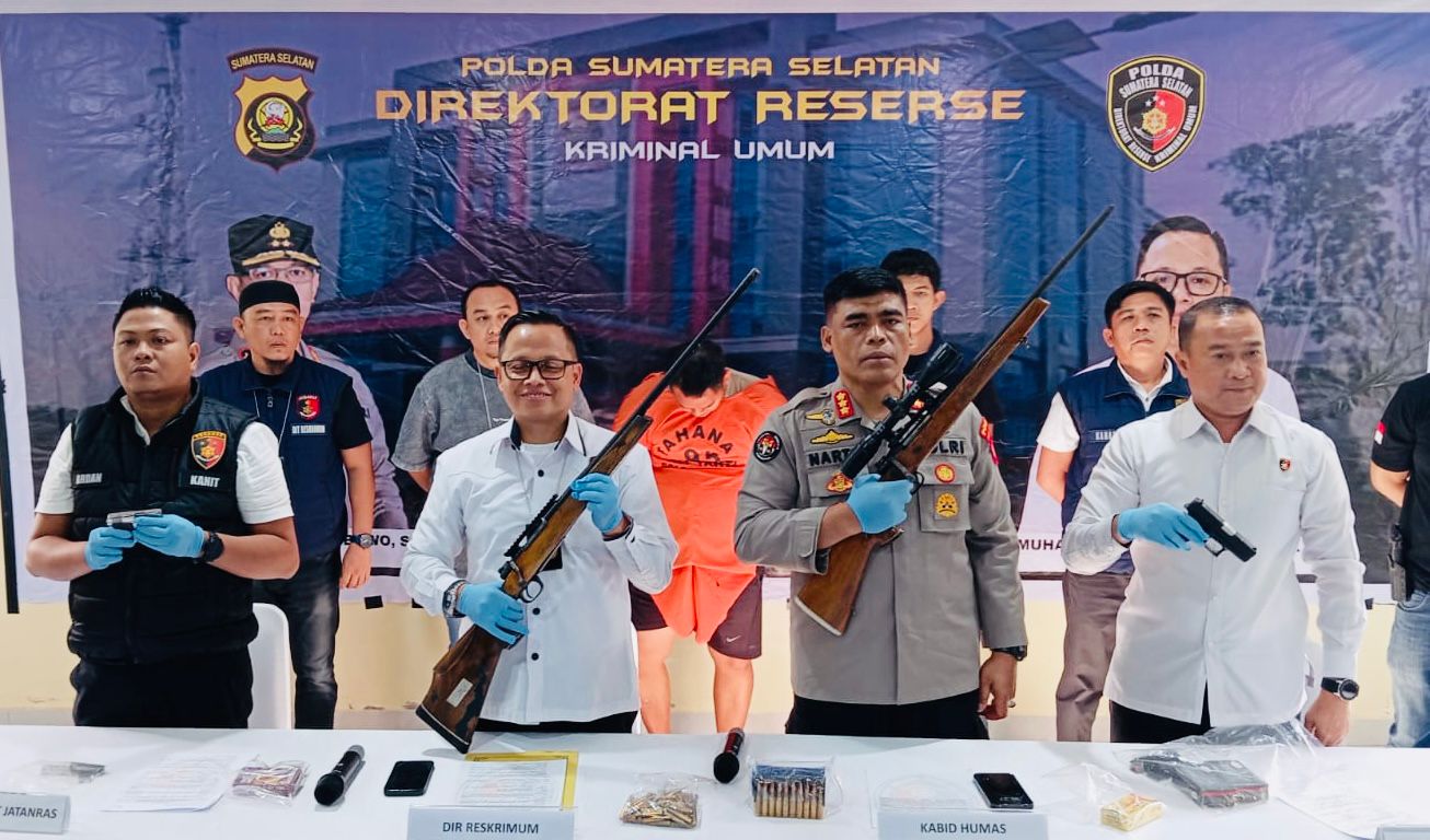 Direktur Kriminal Umum (Direskrimum) Polda Sumsel, Kombes Pol M Anwar Reksowidjojo SH SIK yang menggelar konferensi pers bersama Kabid Humas Kombes Pol Sunarto, mengatakan tindak pidana penyalahgunaan senjata api ini terungkap berkat adanya laporan masyarakat terkait adanya orang yang diduga memiliki, menyimpan dan menguasai senjata api tanpa izin (ilegal).