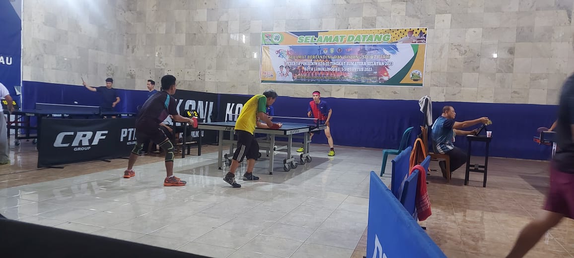 LUBUKLINGGAU-Turnamen Tenis Meja se Bumi Silampari (Linggau, Mura dan Muratara) di Lapangan PTMSI Cabang Lubuklinggau berlangsung seru, Minggu (21/1/2024).